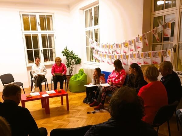 Izziv večera je bil v prvem delu dogodka literarna delavnica, namenjena kovanju haikujev. V slikovitih napotkih Bojane Levinger Kako napisati haiku, so udeleženci med drugim prebrali, da gre za japonsko pesniško obliko, ki v treh vrsticah ujame trenutek, občutek ali sliko iz narave, da je kot fotografija v besedah – majhna, a polna pomena. Mnogo drobnih skrivnosti o snovanju haikujev pa sta navzočim prišepetali voditeljici večera Bojana Levinger in Tinka Hladnik, izurjeni snovalki haikujev, zapisanih tudi v njunih pesniških zbirkah.