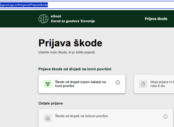 Trenutno je takšna prijava mogoča samo za škodo na LOVNIH površinah.